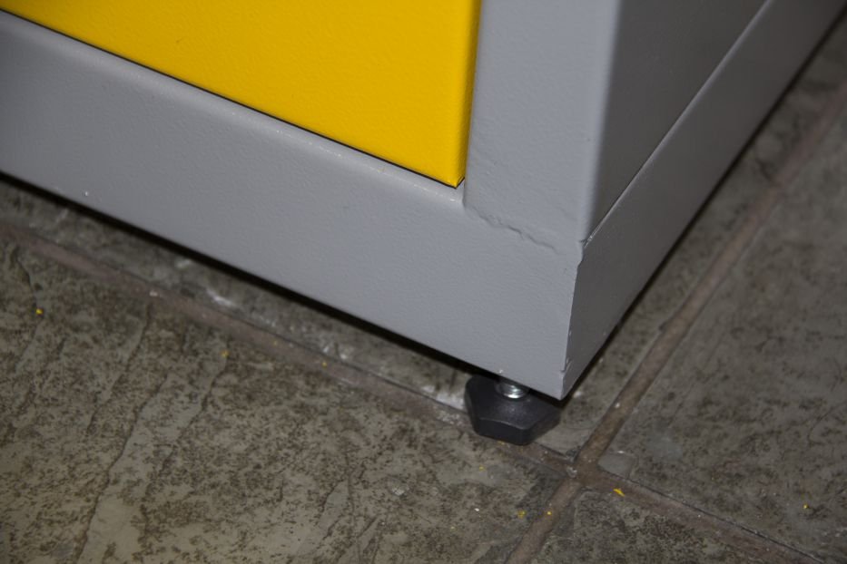 · Pintado na cor amarelo (yellow) para estocagem de líquidos inflamáveis em geral (storage flammable liquids), cor característica para o armário corta fogo para líquidos inflamáveis, armários corta chama para inflamáveis , e armário de segurança para inflamáveis.